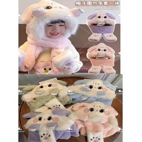 Children's Winter Rabbit Warm Hat, Scarf and Gloves Three-piece Set, Thickened Cycling Windproof Winter Hat